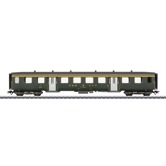 Prototipo: Carrozza d'acciaio leggera di 1ª classe delle Ferrovie Federali Svizzere (SBB CFF FFS) con porte a quattro antine e due ingressi per ciascun lato. Colorazione verde abete. Condizioni di esercizio attorno al 1990.